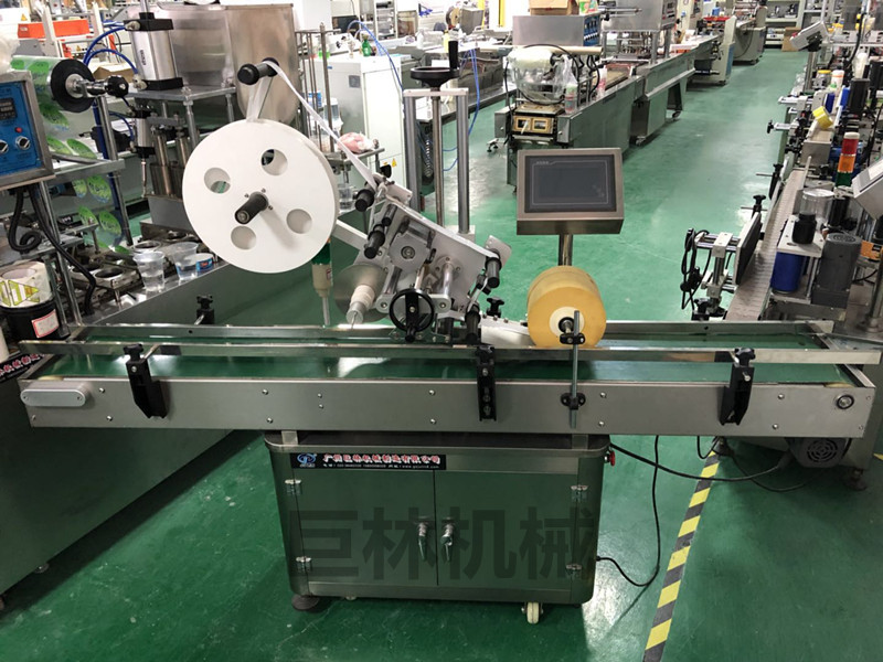 立式贴标机是采用不干胶卷筒贴标纸,贴标采用滚贴方式,配制自动送瓶和收瓶装置,一次完成放瓶、贴标及收瓶程序,还可配备印字机同步完成标签打印,本机采用电脑光纤控制,同步追踪,出标由互感步进电机控制,确保出标速度与卷瓶速度同步的自动化包装机械。是现代的机电一体化产品,具有优良和可靠的工作性能。不干胶贴标机具有清洁卫生、不发霉,贴标后美观、牢固、不会自行脱落,生产效率高等优点。
